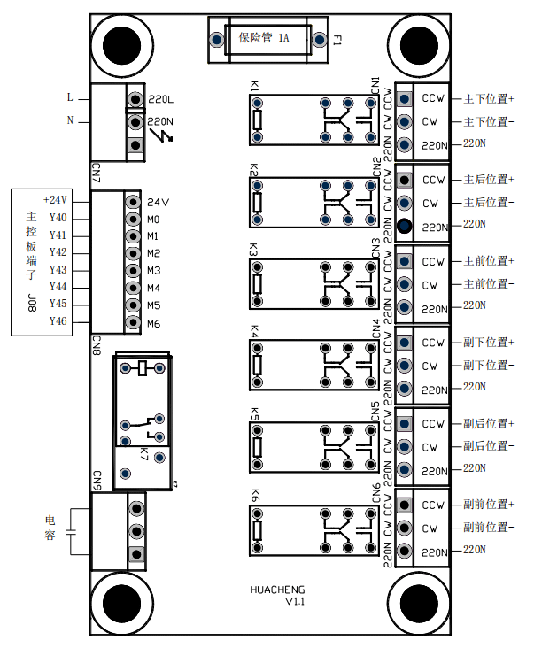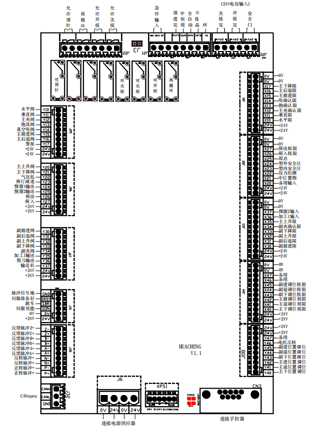 九州酷游(ku游)标准系列注塑机械手控制系统,HC-S1,单轴注塑机械手控制系统。主控制板接线图如下: