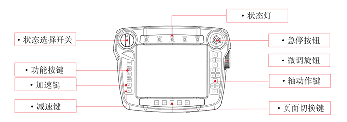 悬浮按钮:辅助按键为虚拟按键。有启动,停止,原点,复归,加速,减速,手轮-,手轮+,手动,停止,自动以及伺服参数监视。为手控器实体按键的辅助措施。